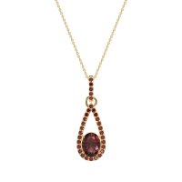 This Ruby and Garnet Necklace is casted in 14k Yellow Gold. This Women’s Fashion necklace features exceptionally fine gemstones, on par with those found in the world's most exclusive boutiques and among the top 10% available globally. Teardrop Pendant Outlined with Shimmering Accents. A Captivating Design with A Prominent Oval Center Stone, Surrounded By A Tear Drop Halo. This necklace comes with a complimentary 18-inch chain. Enjoy the confidence of our 30-day, stress-free return policy—with return shipping fully covered. Each piece is also accompanied by a Lifetime Warranty, ensuring lasting beauty and peace of mind.