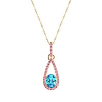 This Swiss Blue Topaz and Pink Tourmaline Necklace is casted in 14k Yellow Gold. This Women’s Fashion necklace features exceptionally fine gemstones, on par with those found in the world's most exclusive boutiques and among the top 10% available globally. Teardrop Pendant Outlined with Shimmering Accents. A Captivating Design with A Prominent Oval Center Stone, Surrounded By A Tear Drop Halo. This necklace comes with a complimentary 18-inch chain. Enjoy the confidence of our 30-day, stress-free return policy—with return shipping fully covered. Each piece is also accompanied by a Lifetime Warranty, ensuring lasting beauty and peace of mind.