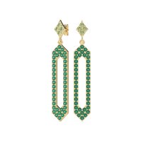 These Peridot earrings and made in 18k Yellow Gold with top quality Natural Peridot and Emerald gemstones. Make A Sophisticated Statement With These Unique Gemstone-studded Paper Clip Style Earrings, Designed To Gracefully Dangle And Catch The Light. Free shipping, returns, and a lifetime warranty make luxury worry-free