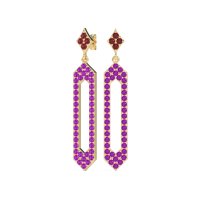 These Ruby earrings and made in 14k Yellow Gold with top quality Natural Ruby and Amethyst gemstones. Make A Sophisticated Statement With These Unique Gemstone-studded Paper Clip Style Earrings, Designed To Gracefully Dangle And Catch The Light. Free shipping, returns, and a lifetime warranty make luxury worry-free