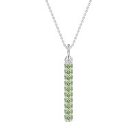 This Peridot Classic Necklace is casted in Platinum. We use only exceptionally fine gemstones, truly on par with those found in the world's most exclusive boutiques and representing the top 10% available globally. Slender, Linear Pendant Featuring Multiple Vertical Rows Of Round Stones Set Closely Together. You'll get a complimentary 18-inch chain with every necklace. Plus, enjoy a 30-day, hassle-free return policy (we even cover return shipping!) and a Lifetime Warranty for peace of mind.