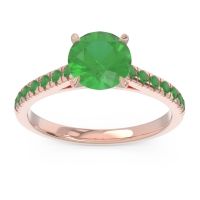 This 14K Rose Gold Emerald ring features a AAAA Round Emerald stone, found across the finest boutiques in the world. We only use gems that are within the top 10% of material available. This ring can be worn as an Emerald engagement ring, or can also be added to your collection of gemstone rings. This Ring Features A Large Round Brilliant Gem in A Raised Cathedral 4-claw Prong Setting. Smaller Rounds in A French Pave Setting Also Cascade Half Way Down The Shank. We offer Free Shipping and Free Returns, along with a Free Resize. This ring also comes with a lifetime warranty which covers the integrity of our workmanship forever.