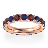 This Blue Sapphire wedding ring is casted in 14K Rose Gold and set with fine quality Blue Sapphire and Ruby. All of the gemstones we use are of the top 10% available, those found in fine quality boutiques across the world. This Blue Sapphire wedding band can also be added to your collection of minimalist Blue Sapphire rings. The Beautiful Eternity Band Features Pave Set Round Going All The Way Around. Free shipping, returns, resizing, and a lifetime warranty ensure you love your purchase.