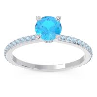 This 14k White Gold Swiss Blue Topaz ring features a AAAA Round Swiss Blue Topaz, along with fine quality Aquamarine. This Ring Features A Large Round Brilliant in A Raised 4 Claw Prong Setting Accented with A Ring Of Smaller Rounds At The Base Of The Center Stone And Around The Shank. We only use the top 10% of gems available, those found in the finest jewelry shops across the world. This Swiss Blue Topaz engagement ring can also be worn as an Swiss Blue Topaz and Aquamarine gemstone ring and added to your collection! Enjoy Free Shipping and Returns, Free Resize and a lifetime warranty.