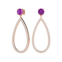 These Amethyst earrings and made in 18K Rose Gold with top quality Amethyst and Lab Diamond gemstones. These Elegant Dangling Earrings Feature A Brilliant Round Stud At The Top, From Which Suspends A Graceful, Open Pear-shaped (or Teardrop) Outline. The Pear-shaped Frame Is Entirely Adorned With Sparkling Pave-set Gemstones, Creating A Continuous Line Of Shimmer. Free shipping, returns, and a lifetime warranty make luxury worry-free