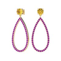 These Citrine earrings and made in 14k Yellow Gold with top quality Natural Citrine and Amethyst gemstones. These Elegant Dangling Earrings Feature A Brilliant Round Stud At The Top, From Which Suspends A Graceful, Open Pear-shaped (or Teardrop) Outline. The Pear-shaped Frame Is Entirely Adorned With Sparkling Pave-set Gemstones, Creating A Continuous Line Of Shimmer. Free shipping, returns, and a lifetime warranty make luxury worry-free