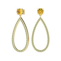 These Citrine earrings and made in 14k Yellow Gold with top quality Natural Citrine and Peridot gemstones. These Elegant Dangling Earrings Feature A Brilliant Round Stud At The Top, From Which Suspends A Graceful, Open Pear-shaped (or Teardrop) Outline. The Pear-shaped Frame Is Entirely Adorned With Sparkling Pave-set Gemstones, Creating A Continuous Line Of Shimmer. Free shipping, returns, and a lifetime warranty make luxury worry-free