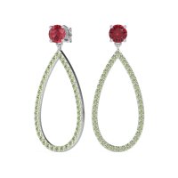 These Ruby earrings and made in Platinum with top quality Natural Ruby and Peridot gemstones. These Elegant Dangling Earrings Feature A Brilliant Round Stud At The Top, From Which Suspends A Graceful, Open Pear-shaped (or Teardrop) Outline. The Pear-shaped Frame Is Entirely Adorned With Sparkling Pave-set Gemstones, Creating A Continuous Line Of Shimmer. Free shipping, returns, and a lifetime warranty make luxury worry-free