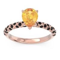 This 14K Rose Gold Citrine ring features a AAAA Pear Citrine, along with fine quality Black Onyx. This Ring Features A Large Pear Shape Gem Surrounded By 4 Claw Prongs in A Raised Setting with Smaller Rounds Cascading Half Way Down The Braided Shank. We only use the top 10% of gems available, those found in the finest jewelry shops across the world. This Citrine engagement ring can also be worn as an Citrine and Black Onyx gemstone ring and added to your collection! Enjoy Free Shipping and Returns, Free Resize and a lifetime warranty.