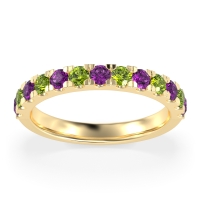 This Amethyst wedding ring is casted in 14k Yellow Gold and set with fine quality Amethyst and Peridot. All of the gemstones we use are of the top 10% available, those found in fine quality boutiques across the world. This Amethyst wedding band can also be added to your collection of minimalist Amethyst rings. Classic Half-eternity Band with Pave-set Round Stones. Free shipping, returns, resizing, and a lifetime warranty ensure you love your purchase.