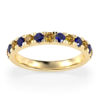 This Citrine wedding ring is casted in 18k Yellow Gold and set with fine quality Citrine and Blue Sapphire. All of the gemstones we use are of the top 10% available, those found in fine quality boutiques across the world. This Citrine wedding band can also be added to your collection of minimalist Citrine rings. Classic Half-eternity Band with Pave-set Round Stones. Free shipping, returns, resizing, and a lifetime warranty ensure you love your purchase.