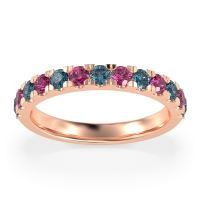 This London Blue Topaz wedding ring is casted in 14K Rose Gold and set with fine quality London Blue Topaz and Pink Tourmaline. All of the gemstones we use are of the top 10% available, those found in fine quality boutiques across the world. This London Blue Topaz wedding band can also be added to your collection of minimalist London Blue Topaz rings. Classic Half-eternity Band with Pave-set Round Stones. Free shipping, returns, resizing, and a lifetime warranty ensure you love your purchase.