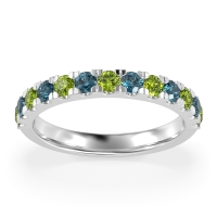 This Peridot wedding ring is casted in Platinum and set with fine quality Peridot and London Blue Topaz. All of the gemstones we use are of the top 10% available, those found in fine quality boutiques across the world. This Peridot wedding band can also be added to your collection of minimalist Peridot rings. Classic Half-eternity Band with Pave-set Round Stones. Free shipping, returns, resizing, and a lifetime warranty ensure you love your purchase.