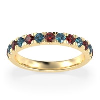 This Ruby wedding ring is casted in 18k Yellow Gold and set with fine quality Ruby and London Blue Topaz. All of the gemstones we use are of the top 10% available, those found in fine quality boutiques across the world. This Ruby wedding band can also be added to your collection of minimalist Ruby rings. Classic Half-eternity Band with Pave-set Round Stones. Free shipping, returns, resizing, and a lifetime warranty ensure you love your purchase.