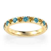This Swiss Blue Topaz wedding ring is casted in 18k Yellow Gold and set with fine quality Swiss Blue Topaz and Citrine. All of the gemstones we use are of the top 10% available, those found in fine quality boutiques across the world. This Swiss Blue Topaz wedding band can also be added to your collection of minimalist Swiss Blue Topaz rings. Classic Half-eternity Band with Pave-set Round Stones. Free shipping, returns, resizing, and a lifetime warranty ensure you love your purchase.