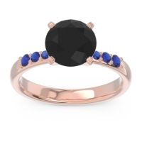 This 14K Rose Gold Black Onyx ring features a AAAA Round Black Onyx, along with fine quality Blue Sapphire. This Ring Features A Large Round Brilliant Gem in A Raised Setting with 6 Small Graduated Rounds On A Tapered Shank. We only use the top 10% of gems available, those found in the finest jewelry shops across the world. This Black Onyx engagement ring can also be worn as an Black Onyx and Blue Sapphire gemstone ring and added to your collection! Enjoy Free Shipping and Returns, Free Resize and a lifetime warranty.