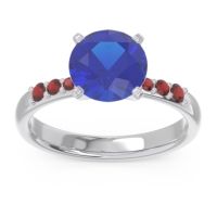 This 14k White Gold Blue Sapphire ring features a AAAA Round Blue Sapphire, along with fine quality Garnet. This Ring Features A Large Round Brilliant Gem in A Raised Setting with 6 Small Graduated Rounds On A Tapered Shank. We only use the top 10% of gems available, those found in the finest jewelry shops across the world. This Blue Sapphire engagement ring can also be worn as an Blue Sapphire and Garnet gemstone ring and added to your collection! Enjoy Free Shipping and Returns, Free Resize and a lifetime warranty.