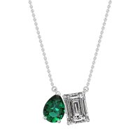 This Emerald and Lab Diamond Necklace is casted in Platinum. This Women’s Classic necklace features exceptionally fine gemstones, on par with those found in the world's most exclusive boutiques and among the top 10% available globally. This Toi Et Moi Charming Pendant Features Two Connected Stones, A Pear Shape And An Oval Set Side-by-side. This necklace comes with a complimentary 18-inch chain. Enjoy the confidence of our 30-day, stress-free return policy—with return shipping fully covered. Each piece is also accompanied by a Lifetime Warranty, ensuring lasting beauty and peace of mind.