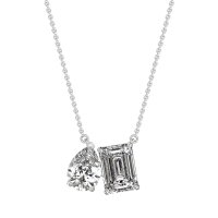 This Lab Diamond and Diamond Necklace is casted in Palladium. This Women’s Classic necklace features exceptionally fine gemstones, on par with those found in the world's most exclusive boutiques and among the top 10% available globally. This Toi Et Moi Charming Pendant Features Two Connected Stones, A Pear Shape And An Oval Set Side-by-side. This necklace comes with a complimentary 18-inch chain. Enjoy the confidence of our 30-day, stress-free return policy—with return shipping fully covered. Each piece is also accompanied by a Lifetime Warranty, ensuring lasting beauty and peace of mind.