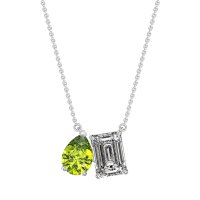 This Peridot and Lab Diamond Necklace is casted in Platinum. This Women’s Classic necklace features exceptionally fine gemstones, on par with those found in the world's most exclusive boutiques and among the top 10% available globally. This Toi Et Moi Charming Pendant Features Two Connected Stones, A Pear Shape And An Oval Set Side-by-side. This necklace comes with a complimentary 18-inch chain. Enjoy the confidence of our 30-day, stress-free return policy—with return shipping fully covered. Each piece is also accompanied by a Lifetime Warranty, ensuring lasting beauty and peace of mind.