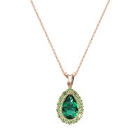 This Emerald and Peridot Necklace is casted in 14K Rose Gold. This Women’s Halo necklace features exceptionally fine gemstones, on par with those found in the world's most exclusive boutiques and among the top 10% available globally. Classic Pendant Featuring A Pear-shaped Center Stone Embraced By A Classic Halo Of Smaller Stones. This necklace comes with a complimentary 18-inch chain. Enjoy the confidence of our 30-day, stress-free return policy—with return shipping fully covered. Each piece is also accompanied by a Lifetime Warranty, ensuring lasting beauty and peace of mind.