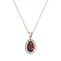 This Garnet and Lab Diamond Necklace is casted in 14K Rose Gold. This Women’s Halo necklace features exceptionally fine gemstones, on par with those found in the world's most exclusive boutiques and among the top 10% available globally. Classic Pendant Featuring A Pear-shaped Center Stone Embraced By A Classic Halo Of Smaller Stones. This necklace comes with a complimentary 18-inch chain. Enjoy the confidence of our 30-day, stress-free return policy—with return shipping fully covered. Each piece is also accompanied by a Lifetime Warranty, ensuring lasting beauty and peace of mind.
