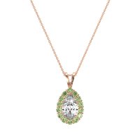 This Lab Diamond and Peridot Necklace is casted in 14K Rose Gold. This Women’s Halo necklace features exceptionally fine gemstones, on par with those found in the world's most exclusive boutiques and among the top 10% available globally. Classic Pendant Featuring A Pear-shaped Center Stone Embraced By A Classic Halo Of Smaller Stones. This necklace comes with a complimentary 18-inch chain. Enjoy the confidence of our 30-day, stress-free return policy—with return shipping fully covered. Each piece is also accompanied by a Lifetime Warranty, ensuring lasting beauty and peace of mind.
