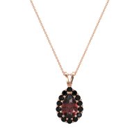 This Ruby and Black Onyx Necklace is casted in 14K Rose Gold. This Women’s Halo necklace features exceptionally fine gemstones, on par with those found in the world's most exclusive boutiques and among the top 10% available globally. Classic Pendant Featuring A Pear-shaped Center Stone Embraced By A Classic Halo Of Smaller Stones. This necklace comes with a complimentary 18-inch chain. Enjoy the confidence of our 30-day, stress-free return policy—with return shipping fully covered. Each piece is also accompanied by a Lifetime Warranty, ensuring lasting beauty and peace of mind.