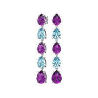 These Amethyst earrings and made in Platinum with top quality Natural Amethyst and Swiss Blue Topaz gemstones. These Captivating Dangle Earrings Feature A Unique And Elegant Design, Showcasing A Total Of Five Pear-shaped Stones. Four Smaller Pear Shapes Are Gracefully Arranged, Leading Down To A Larger, More Prominent Pear-shaped Stone At The Bottom, Creating A Sophisticated Cascading Effect And Brilliant Sparkle. This Distinctive Multi-pear Design Offers A Modern Twist On Classic Elegance, Perfect For Adding A Striking Touch To Any Look. Free shipping, returns, and a lifetime warranty make luxury worry-free