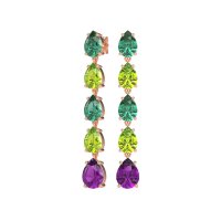 These 14K Rose Gold Emerald earrings feature fine quality with Natural Emerald, Peridot and Amethyst gemstones. These Captivating Dangle Earrings Feature A Unique And Elegant Design, Showcasing A Total Of Five Pear-shaped Stones. Four Smaller Pear Shapes Are Gracefully Arranged, Leading Down To A Larger, More Prominent Pear-shaped Stone At The Bottom, Creating A Sophisticated Cascading Effect And Brilliant Sparkle. This Distinctive Multi-pear Design Offers A Modern Twist On Classic Elegance, Perfect For Adding A Striking Touch To Any Look. Free shipping, returns, and a lifetime warranty make luxury worry-free.