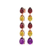 These 14K Rose Gold Ruby earrings feature fine quality with Natural Ruby, Citrine and Amethyst gemstones. These Captivating Dangle Earrings Feature A Unique And Elegant Design, Showcasing A Total Of Five Pear-shaped Stones. Four Smaller Pear Shapes Are Gracefully Arranged, Leading Down To A Larger, More Prominent Pear-shaped Stone At The Bottom, Creating A Sophisticated Cascading Effect And Brilliant Sparkle. This Distinctive Multi-pear Design Offers A Modern Twist On Classic Elegance, Perfect For Adding A Striking Touch To Any Look. Free shipping, returns, and a lifetime warranty make luxury worry-free.
