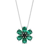 This Emerald and Black Onyx Necklace is casted in 14k White Gold. This Women’s Fashion necklace features exceptionally fine gemstones, on par with those found in the world's most exclusive boutiques and among the top 10% available globally. This Floral Pendant Features A Central Round Stone Surrounded By Pear-shaped Stones, Resembling Delicate Petals. This necklace comes with a complimentary 18-inch chain. Enjoy the confidence of our 30-day, stress-free return policy—with return shipping fully covered. Each piece is also accompanied by a Lifetime Warranty, ensuring lasting beauty and peace of mind.