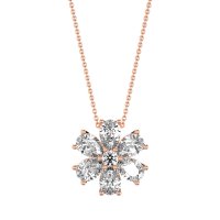 This Lab Diamond Fashion Necklace is casted in 18K Rose Gold. We use only exceptionally fine gemstones, truly on par with those found in the world's most exclusive boutiques and representing the top 10% available globally. This Floral Pendant Features A Central Round Stone Surrounded By Pear-shaped Stones, Resembling Delicate Petals. You'll get a complimentary 18-inch chain with every necklace. Plus, enjoy a 30-day, hassle-free return policy (we even cover return shipping!) and a Lifetime Warranty for peace of mind.