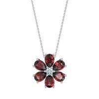This Ruby and Aquamarine Necklace is casted in 14k White Gold. This Women’s Fashion necklace features exceptionally fine gemstones, on par with those found in the world's most exclusive boutiques and among the top 10% available globally. This Floral Pendant Features A Central Round Stone Surrounded By Pear-shaped Stones, Resembling Delicate Petals. This necklace comes with a complimentary 18-inch chain. Enjoy the confidence of our 30-day, stress-free return policy—with return shipping fully covered. Each piece is also accompanied by a Lifetime Warranty, ensuring lasting beauty and peace of mind.