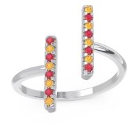 This Ruby and Citrine ring is the perfect addition to you wardrobe. Not only do we use the top 10% of gemstones available, we also make everything right here in New York City. Our Fashion Rings can be added to your collection of dainty rings, or even to your collection of stacking rings. This Ring Features Two Rows Of Round Brilliant Gems in A Shared Scalloped Prong Setting On Each Arm Of The Offset Open Setting. Ditch the worry, embrace the shine with free shipping, returns, resizing and a lifetime warranty.