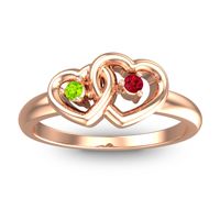 This Ruby and Peridot ring is the perfect addition to you wardrobe. Not only do we use the top 10% of gemstones available, we also make everything right here in New York City. Our Fashion Rings can be added to your collection of dainty rings, or even to your collection of stacking rings. This Romantic Ring Features 2 Round Brilliant Gems Of Your Choice Set Between interlocking Hearts. Ditch the worry, embrace the shine with free shipping, returns, resizing and a lifetime warranty.