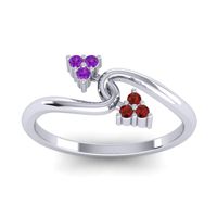 This Amethyst and Garnet ring is the perfect addition to you wardrobe. Not only do we use the top 10% of gemstones available, we also make everything right here in New York City. Our Fashion Rings can be added to your collection of dainty rings, or even to your collection of stacking rings. This Ring Features 6 Round Brilliant Gems Of Your Choice in An interlocking Bypass Setting with Three Gems On Each Cluster. Ditch the worry, embrace the shine with free shipping, returns, resizing and a lifetime warranty.