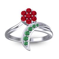 This Ruby and Emerald ring is the perfect addition to you wardrobe. Not only do we use the top 10% of gemstones available, we also make everything right here in New York City. Our Fashion Rings can be added to your collection of dainty rings, or even to your collection of stacking rings. This Nature inspired Ring Features 7 Round Brilliant Gems Of Your Choice in A Cluster Setting Shaped Like A Flower On A Bypass Design with One Arm Of The Band Styled Like A Leaf. Ditch the worry, embrace the shine with free shipping, returns, resizing and a lifetime warranty.