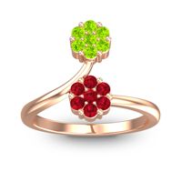 This Ruby and Peridot ring is the perfect addition to you wardrobe. Not only do we use the top 10% of gemstones available, we also make everything right here in New York City. Our Fashion Rings can be added to your collection of dainty rings, or even to your collection of stacking rings. This Nature inspired Ring Features 14 Round Brilliant Gems Of Your Choice in Cluster Settings Shaped Like A Flowers with One in The Center And The Other Branching Off To The Side Giving The Piece An Organic Element. Ditch the worry, embrace the shine with free shipping, returns, resizing and a lifetime warranty.