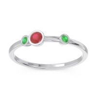 This Ruby and Emerald ring is the perfect addition to you wardrobe. Not only do we use the top 10% of gemstones available, we also make everything right here in New York City. Our Fashion Rings can be added to your collection of dainty rings, or even to your collection of stacking rings. This Ring Features Round Brilliant Gems Offset in A Bezel Setting On A Slender Modern Style. Ditch the worry, embrace the shine with free shipping, returns, resizing and a lifetime warranty.