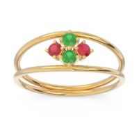 This Ruby and Emerald ring is the perfect addition to you wardrobe. Not only do we use the top 10% of gemstones available, we also make everything right here in New York City. Our Fashion Rings can be added to your collection of dainty rings, or even to your collection of stacking rings. This Ring Features A Diamond Shaped Cluster Of Small Round Brilliant Gems Between Two Slender Shanks Of A Double Line Setting. Ditch the worry, embrace the shine with free shipping, returns, resizing and a lifetime warranty.