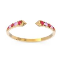 This Ruby and Pink Tourmaline ring is the perfect addition to you wardrobe. Not only do we use the top 10% of gemstones available, we also make everything right here in New York City. Our Fashion Rings can be added to your collection of dainty rings, or even to your collection of stacking rings. This Ring Features Small Round Brilliant Gems in A Prong Setting On Opposite Ends Of An Open Setting. Ditch the worry, embrace the shine with free shipping, returns, resizing and a lifetime warranty.