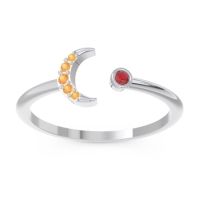 This Ruby and Citrine ring is the perfect addition to you wardrobe. Not only do we use the top 10% of gemstones available, we also make everything right here in New York City. Our Fashion Rings can be added to your collection of dainty rings, or even to your collection of stacking rings. This Ring Features Small Round Brilliant Gems in A Moon Shaped Pave On One Arm And Another Small Round Brilliant in A Bezel Setting On The Other Arm Of An Open Shank. Ditch the worry, embrace the shine with free shipping, returns, resizing and a lifetime warranty.