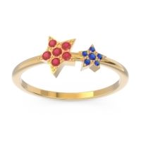 This Ruby and Blue Sapphire ring is the perfect addition to you wardrobe. Not only do we use the top 10% of gemstones available, we also make everything right here in New York City. Our Fashion Rings can be added to your collection of dainty rings, or even to your collection of stacking rings. This Ring Features Two Star-shaped Clusters Of Small Round Brilliant Gems in A Shared Prong Setting with A Slender Shank. Customize And Build Your Own Birthstone Ring By Selecting The Gems And Metals Of Your Choice. Ditch the worry, embrace the shine with free shipping, returns, resizing and a lifetime warranty.