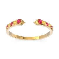 This Ruby and Citrine ring is the perfect addition to you wardrobe. Not only do we use the top 10% of gemstones available, we also make everything right here in New York City. Our Fashion Rings can be added to your collection of dainty rings, or even to your collection of stacking rings. This Ring Features Graduated Small Round Brilliant Gems in A Shared Prong Setting On Opposite Sides Of An Open Shank. Ditch the worry, embrace the shine with free shipping, returns, resizing and a lifetime warranty.