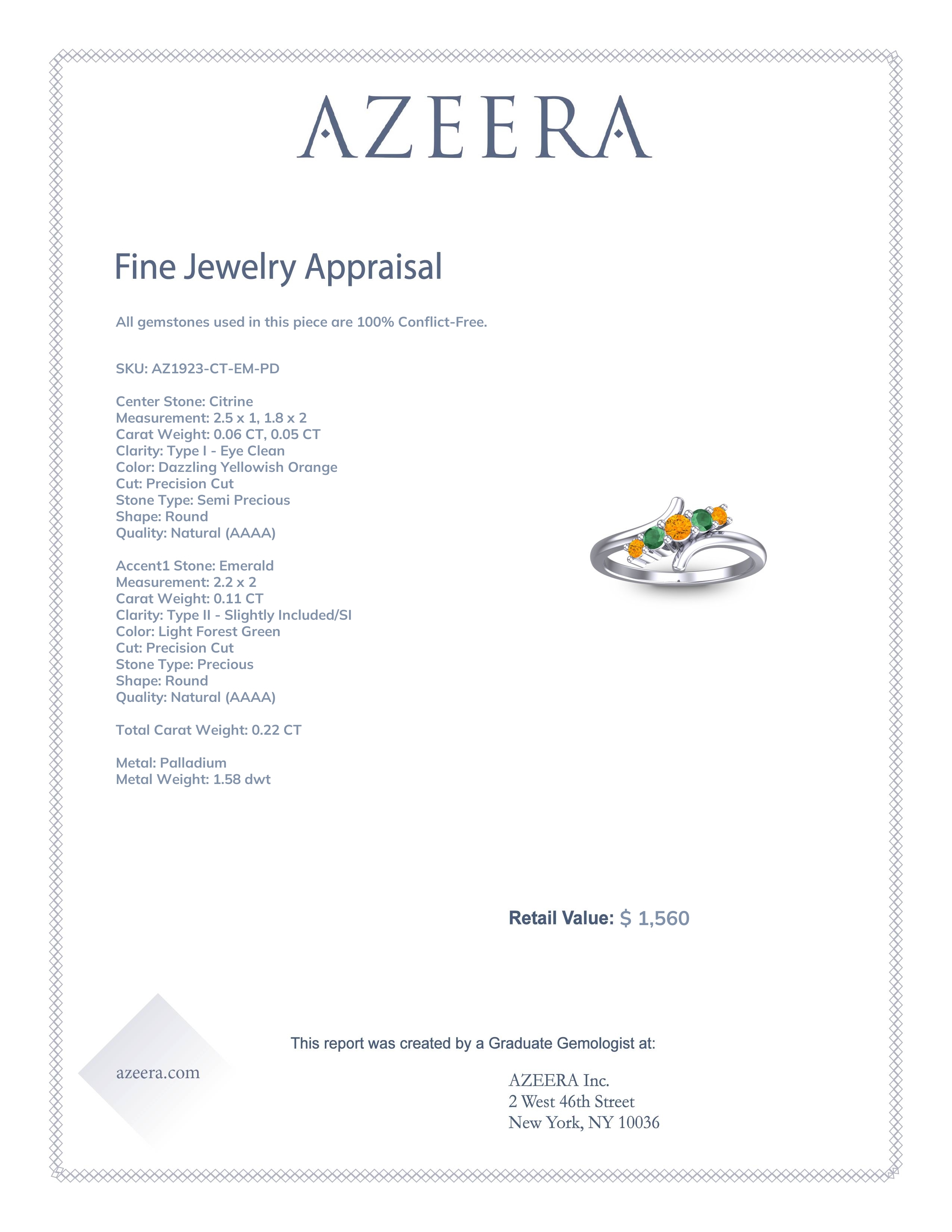 This Citrine and Emerald ring is the perfect addition to you wardrobe. Not only do we use the top 10% of gemstones available, we also make everything right here in New York City. Our Fashion Rings can be added to your collection of dainty rings, or even to your collection of stacking rings. This Modern Ring Features 5 Round Brilliant Gems Of Your Choice in A Shared Prong Setting Between A Bypass Design. Ditch the worry, embrace the shine with free shipping, returns, resizing and a lifetime warranty.