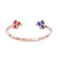 This Ruby and Blue Sapphire ring is the perfect addition to you wardrobe. Not only do we use the top 10% of gemstones available, we also make everything right here in New York City. Our Fashion Rings can be added to your collection of dainty rings, or even to your collection of stacking rings. This Ring Features Six Round Brilliant Gems Bezel Set in A Triangular Pattern On Opposite Ends Of A Slender Modern Open Setting. Customize And Build Your Own Gemstone Ring By Selecting The Gems And Metals Of Your Choice. Ditch the worry, embrace the shine with free shipping, returns, resizing and a lifetime warranty.