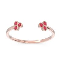 This 14K Rose Gold Ruby ring is the perfect addition to you collection of Fashion Rings. From boardroom to beach bonfire, this transcends the ordinary. This Ring Features Six Round Brilliant Gems Bezel Set in A Triangular Pattern On Opposite Ends Of A Slender Modern Open Setting. Customize And Build Your Own Gemstone Ring By Selecting The Gems And Metals Of Your Choice. Gone are the days of chunky statements and over-the-top sparkle. Today, people are gravitating towards the quiet confidence of minimalist jewelry. These pieces complement, rather than compete with, personal style, allowing individuality to shine through.