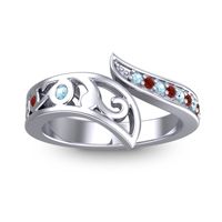 This Aquamarine and Garnet ring is the perfect addition to you wardrobe. Not only do we use the top 10% of gemstones available, we also make everything right here in New York City. Our Fashion Rings can be added to your collection of dainty rings, or even to your collection of stacking rings. This Unique Ring Combines Classical And Modern Design. One Arm Of The Bypass Setting Is Decorated with Filigree Detail And The Other Is Accented with Round Brilliant Gems in A Shared Prong Setting. Ditch the worry, embrace the shine with free shipping, returns, resizing and a lifetime warranty.