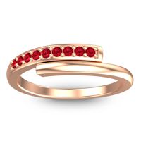 This 18K Rose Gold Ruby ring is the perfect addition to you collection of Fashion Rings. From boardroom to beach bonfire, this transcends the ordinary. This Modern Ring Features 9 Round Brilliant Gems Of Your Choice in A Shared Prong Setting Over On Arm Of The Band. Gone are the days of chunky statements and over-the-top sparkle. Today, people are gravitating towards the quiet confidence of minimalist jewelry. These pieces complement, rather than compete with, personal style, allowing individuality to shine through.